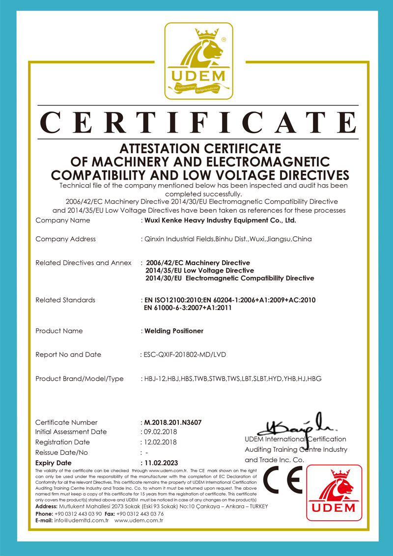 N3607-焊接變位機CE證書